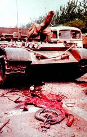 XAC Chet la LIET Đường phố Gan Quảng Trường Thien An Mo Bắc Kinh, ngày 1989.04.06. Số Lieu chính thức cho Biet Chỉ Rieng trong ngày ja đã có 241 người Trung Quốc đã Chet. Anh: AP