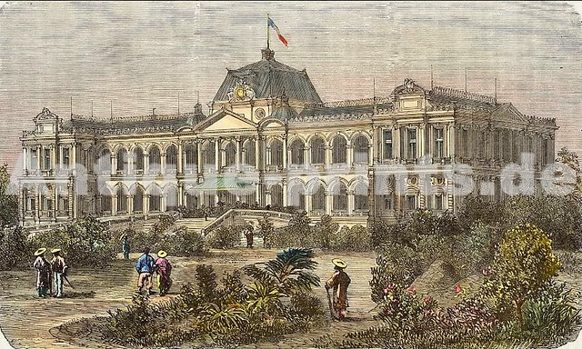 Cũng vì thế mà mãi đến năm 1875, kiến trúc đồ sộ này mới hoàn chỉnh phần trang trí. Sốt ruột về sự chậm trễ trong việc xây dựng và hoàn thành cơ sở, ngay từ năm 1873, Thống đốc Nam kỳ Dupré đã dọn về đây để ở và làm việc trong lúc việc trang trí còn tiếp diễn. Dinh gỗ “Thủy sư Đề đốc” còn được lưu giữ, mãi đến năm 1877 mới bị phá hủy hoàn toàn.Sau khi xây dựng xong, dinh được đặt tên là dinh Norodom và đại lộ trước dinh cũng được gọi là đại lộ Norodom, lấy theo tên của Quốc vương Campuchia lúc bấy giờ là Norodom (1834-1904). Từ 1871 đến 1887, dinh được dành cho Thống đốc Nam kỳ (Gouverneur de la Cochinchine) nên gọi là dinh Thống đốc.Trước khi có dinh Thống đốc Nam kỳ là Dinh gỗ “Thủy sư Đề đốc” được xây dựng bằng gỗ đặt trên một khu đất rộng được giới hạn bởi các con đường Nguyễn Du-Tự Do-Gia Long-Hai Bà Trưng về sau (khu vực sau này là trường Taberd). (nguồn historicvietnam.com do Tim Doling viết)